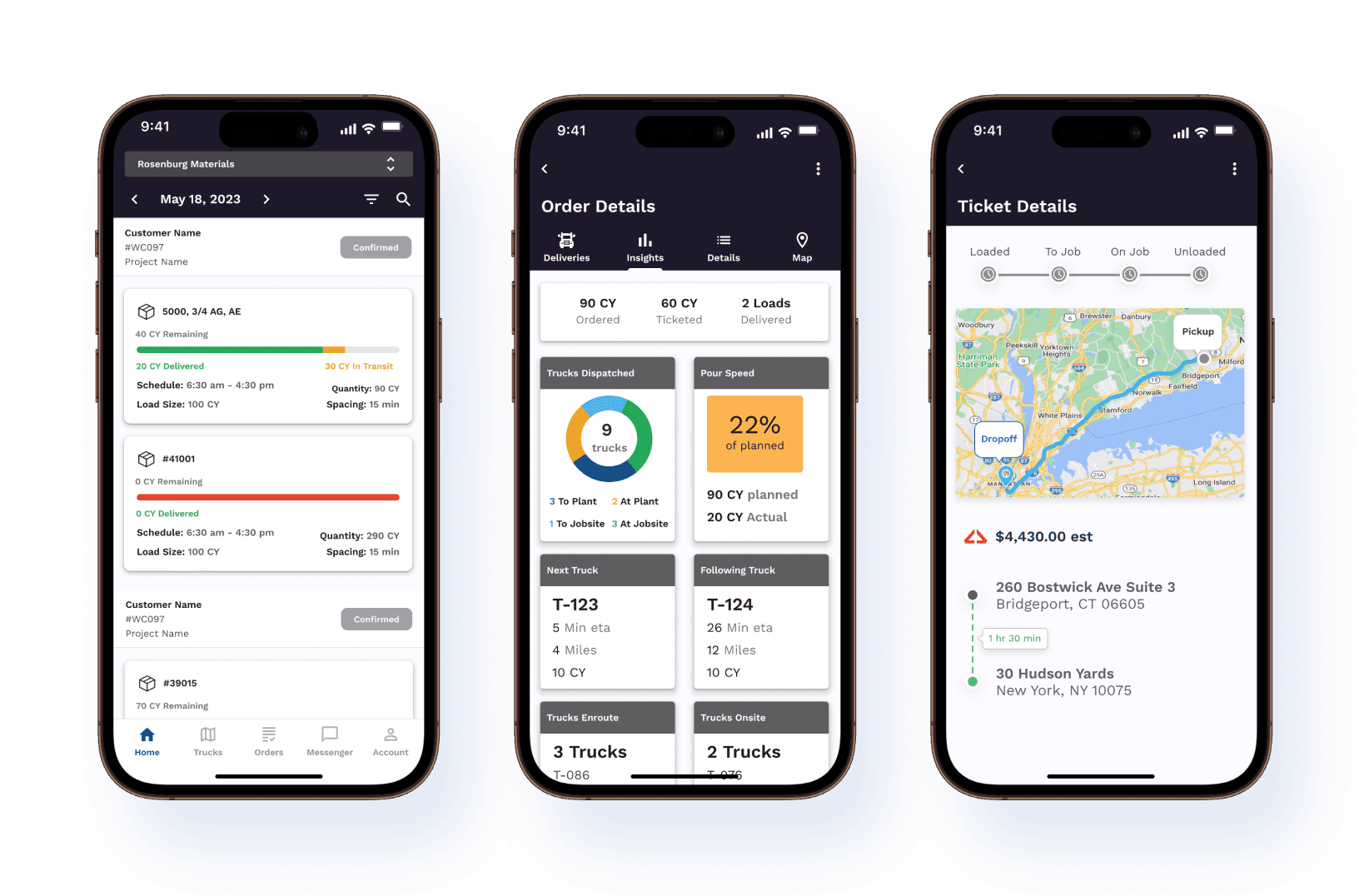 The challenge was to design an experience that could present complex order and delivery data in context, so users—often juggling multiple jobsites—could quickly absorb critical details like truck ETAs, load information, and order statuses without confusion or guesswork.